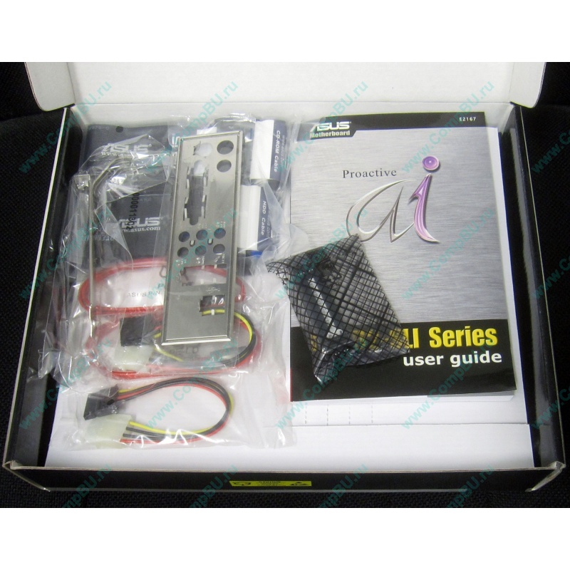 Комплектация: 2 кабеля Serial ATA, 2 кабеля 2-портовых питания SATA, 1модуль COM порт, 2 модуля 2-портовых USB2.0, 2 кабеля UltraDMA 133/100/66, 1 кабель IDE, 1 кабель FDD